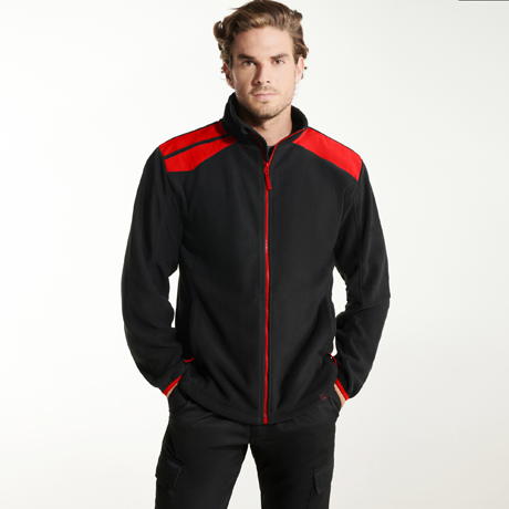 Chaqueta micropolar en colores combinados. · Cuello alto y cremallera inyectada a contraste. · Piezas de hombros y detalles a contraste. · Bolsillos laterales con cremallera. · Puños elásticos y bajos con ajustadores laterales.